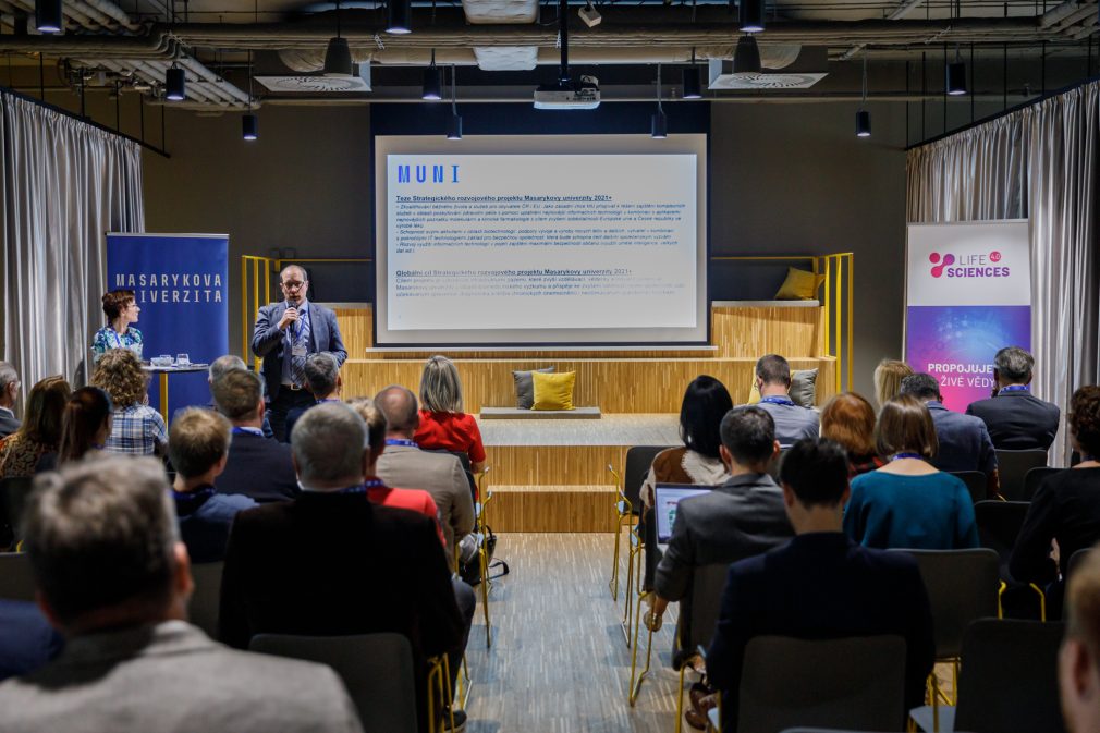 Přednosta ústavu histologie a embryologie Aleš Hampl a jeho kolegové na setkání představili unikátní Preklinické centrum, společný projekt Lékařské a Přírodovědecké fakulty MU. Činnost centra molekulární medicíny přednesla prorektorka pro výzkum a doktorské studium Šárka Pospíšilová spolu s Filipem Pardym z Centrální laboratoře Genomika. „Je velmi přínosné, že jsme mohli širšímu publiku přiblížit potenciál vznikajícího projektu využívajícího synergii vzdělávacích i vědecko-výzkumných aktivit v oblasti biotechnologií a zdravotnictví napříč několika fakultami univerzity, včetně možné spolupráce s Fakultní nemocnicí Brno a dalšími partnery. Čím lépe nastartujeme motor spolupráce, tím širší možnosti se otevřou,“ uvedl David Póč, ředitel strategického projektu MU 2021+, do něhož spadá budování MUNI BioPharma Hubu.
